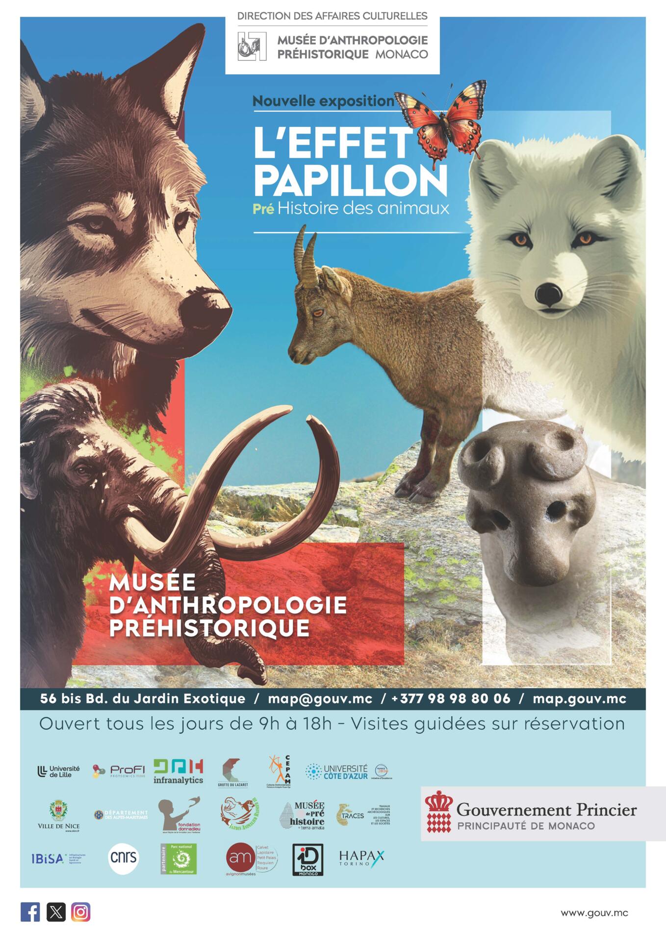 The Monaco Museum of Prehistoric Anthropology is delighted to invite you to discover its new temporary exhibition: The Butterfly Effect: The Pre-History of Animals, organised under the High Patronage of H.S.H. Prince Albert II of Monaco. Explore whole rooms themed to the animal kingdom and biodiversity, and take a fascinating journey through archaeology and our natural history!