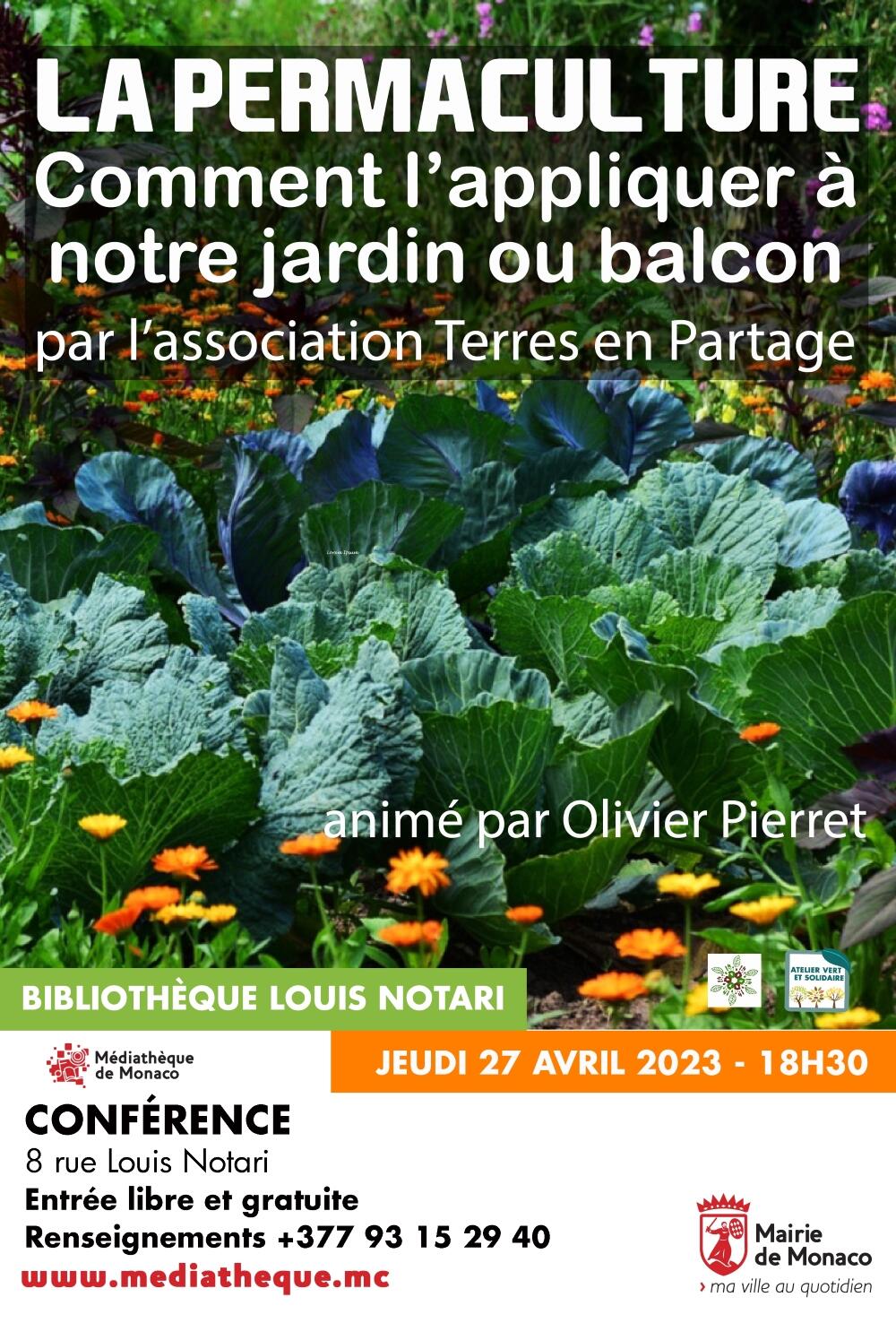 The aim of a permaculture vegetable patch is to produce nutritious fruits and vegetables whilst taking care of the environment. Olivier PIERRET, from the association "Terres en partage", will explain this ethical and philosophical approach that looks after the Earth and humanity, and promotes equal sharing of resources. The lecture will include numerous hints and tips to try at home.