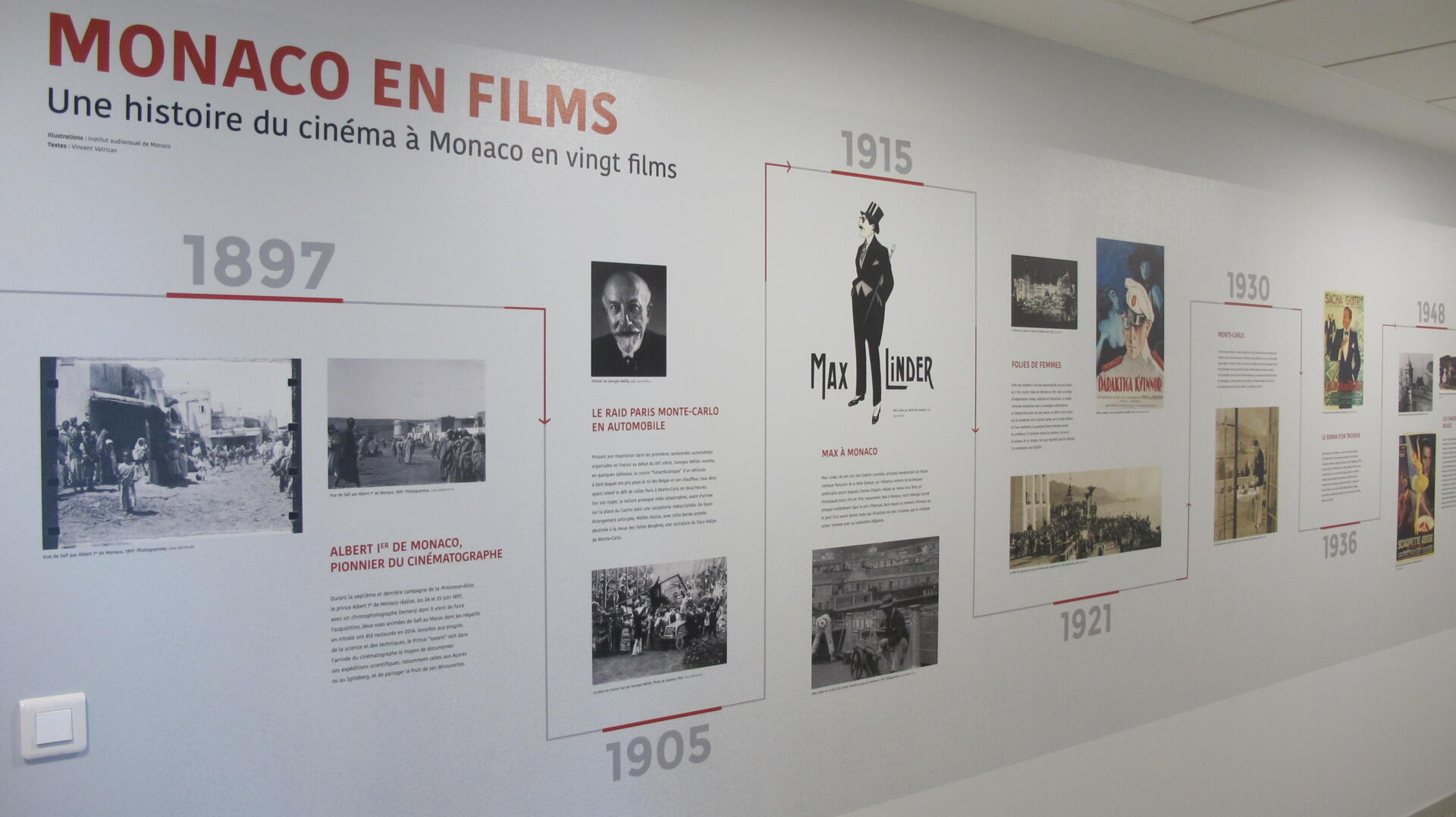 La frise "Histoire du cinéma à Monaco" expose une sélection de vingt films tournés à Monaco pour le grand écran, présentés avec des archives issues des collections de l’Institut.