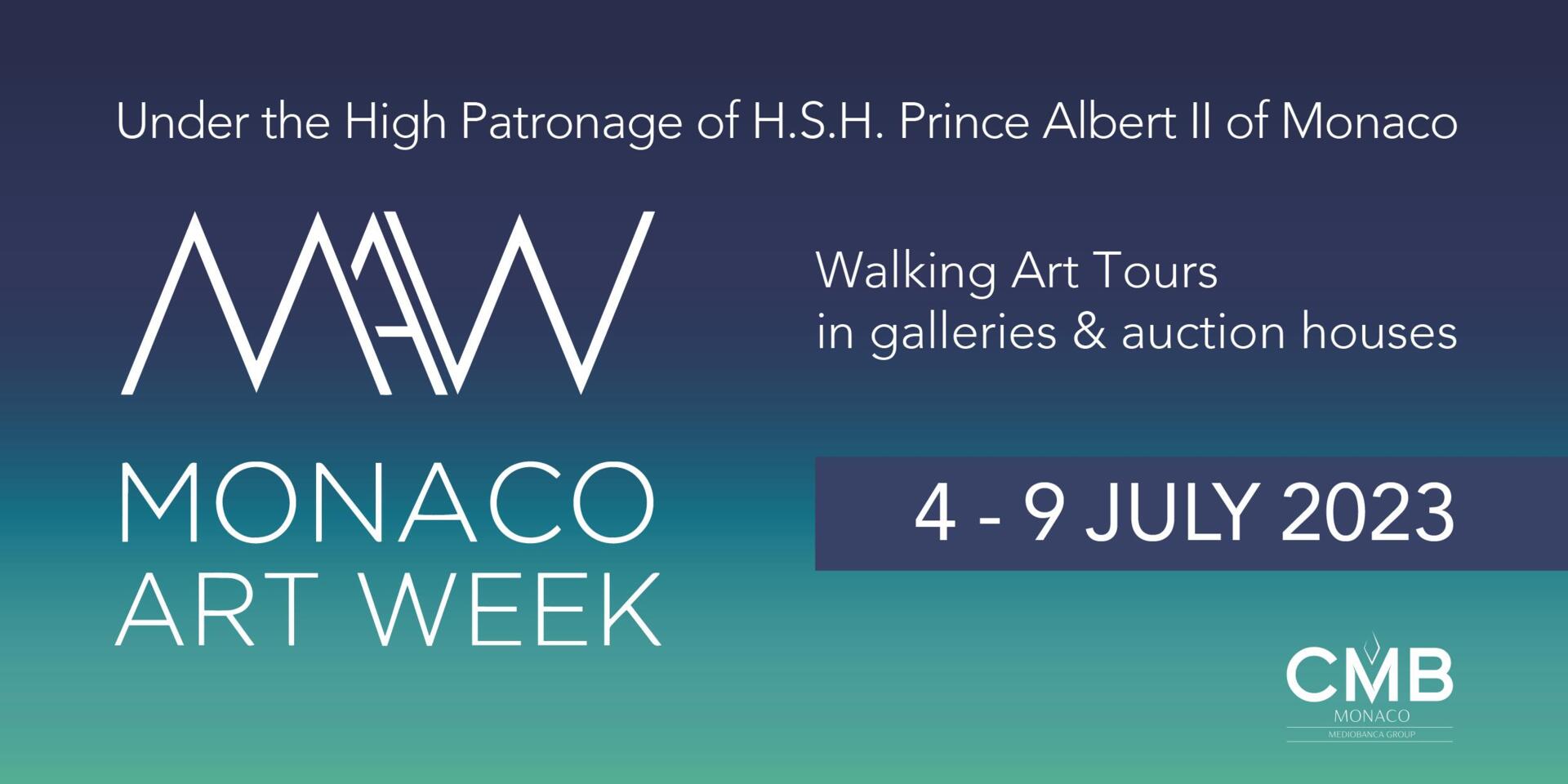 Monaco Art Week, under the High Patronage of H.S.H. Prince Albert II of Monaco, celebrates its 5th edition, offering a new artistic journey in the Principality of Monaco. Galleries and auction houses gather for the occasion around exhibitions and artistic events, offering a varied programme of modern art, contemporary art, and high jewellery creations. Monaco Art Week 2023 brings together 16 participants from the districts of Monte-Carlo and Larvotto : Artcurial; Boghossian; Christie’s; G&M Design; Hauser & Wirth; HOFA; Kamil Art Gallery; Lebreton; Elisabeth Lillo-Renner; M.-F. Toninelli Art Moderne; Opera Gallery; Galerie Adriano Ribolzi; Sotheby’s; Teos Gallery Monte-Carlo; Wannenes Art Contact; et Ward Moretti at Moretti Fine Art.