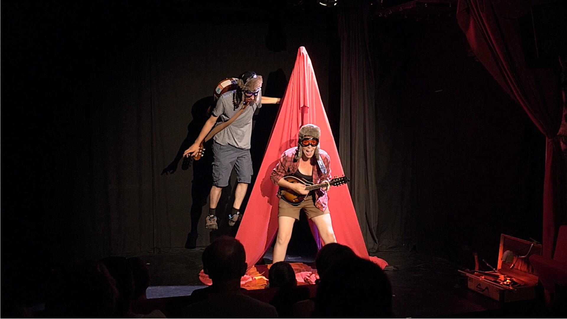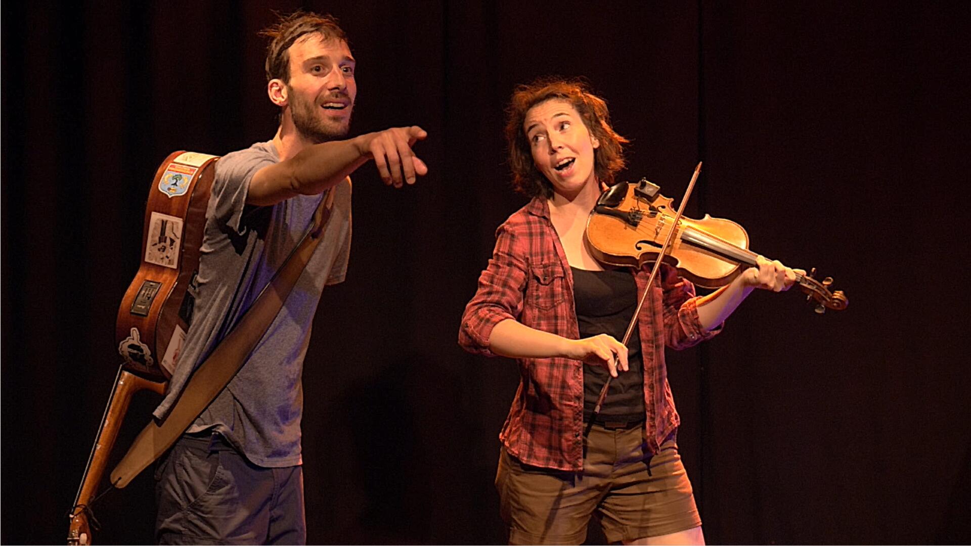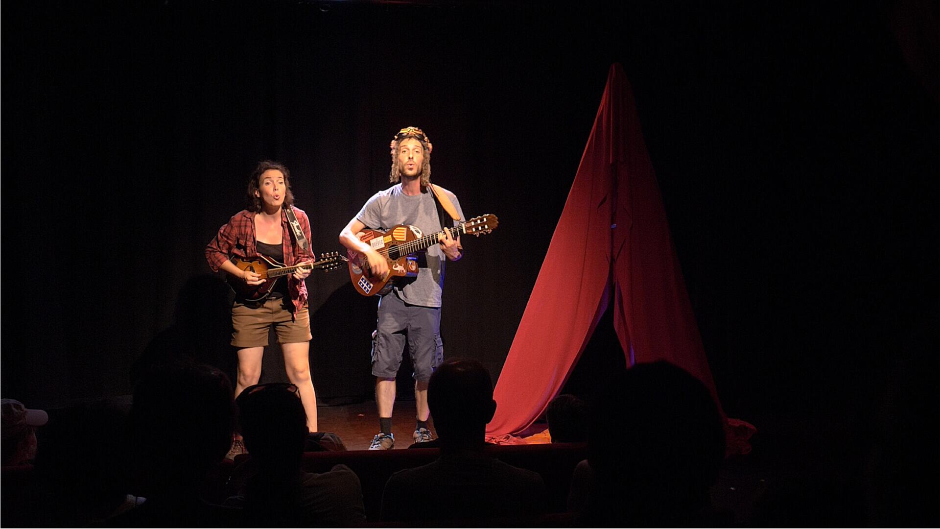A brother and sister get lost in a still-pristine forest in Quebec, where they encounter an amazing animal: the Flying Caribou. It then takes them on a journey, stopping in various corners of the world. From Canada to the North Pole, passing through desert oases, they always end up where the show takes place. They weather climate storms, witness the damage caused by the greenhouse effect, marvel at new technologies, and even meet a permaculture duck! This interactive, eco-friendly, and musical show blends songs, humor, and poetry to raise children's awareness of environmental issues.