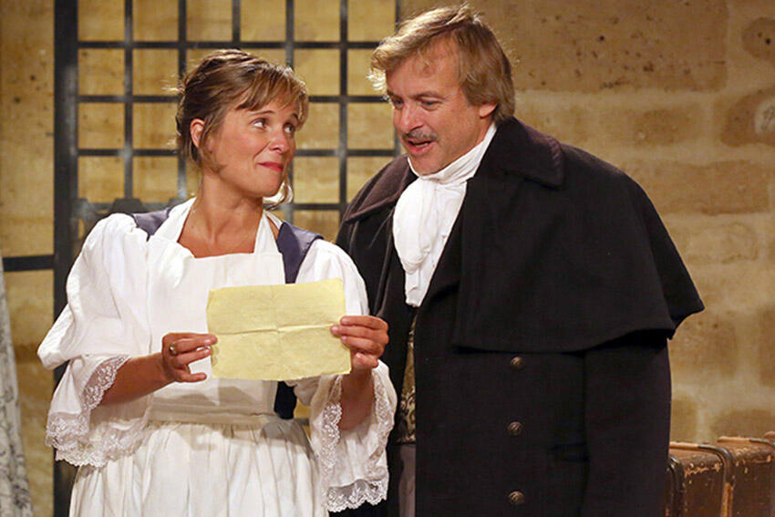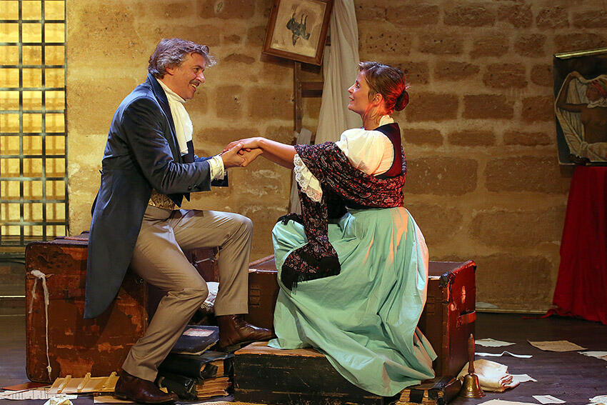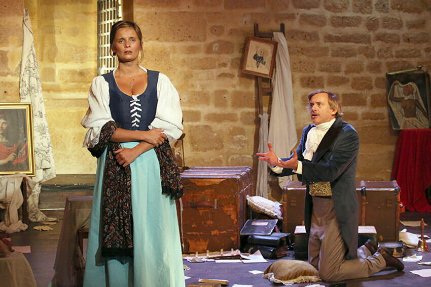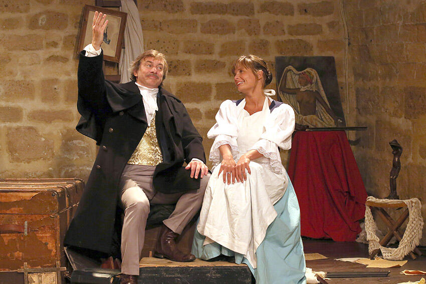 Nous sommes en septembre 1851, la servante et le nouveau cocher d’Alfred de Musset pénètrent dans son grenier pour récupérer les harnais du coche, mais la découverte de textes inédits, le récit d’anecdotes piquantes vont les conduire à jouer eux-mêmes « Il faut qu’une porte soit ouverte ou fermée » et se déclarer de façon singulière leur amour. Toute la flamme de Musset jaillit de cette « comédie-proverbe » flamboyante, joyau de la littérature romantique, qui fera le régal de tous les amoureux d’un théâtre authentique et passionné.