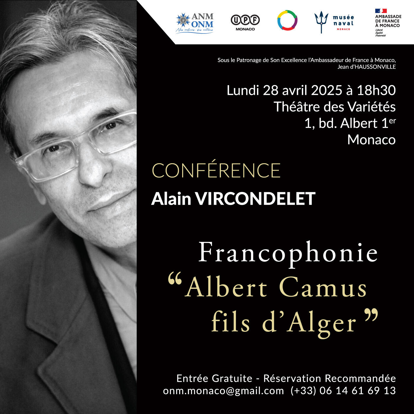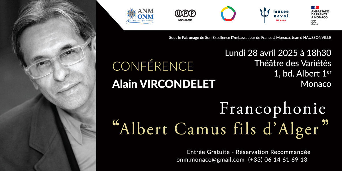 Universitaire français, écrivain, biographe et historien de l’art, Alain VIRCONDELET est né à Alger au milieu du siècle dernier. Aujourd’hui, le temps d'une conférence, c’est à la biographie d’Albert CAMUS qu’il nous propose de nous intéresser, celle dans laquelle il s’emploiera à éclairer le génie de cet homme.