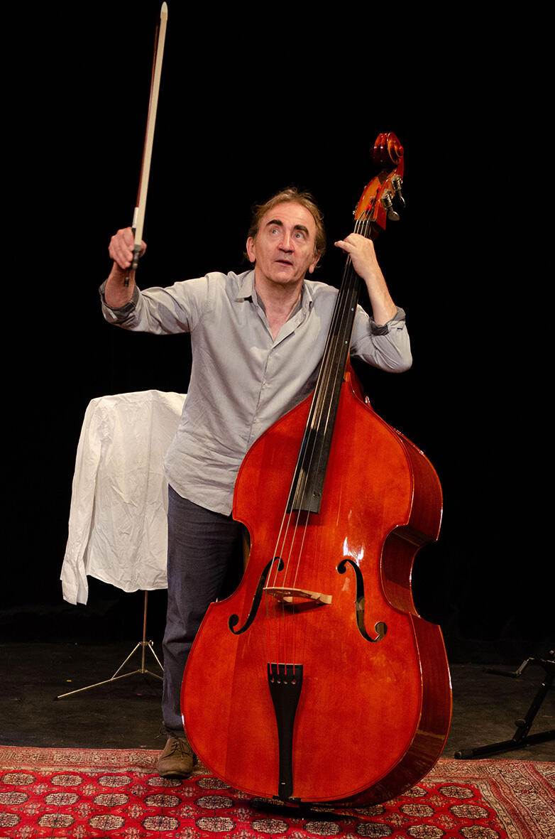 Chef-d’œuvre d’humour grinçant, « La Contrebasse » est le portrait saisissant d’un être humain dans ses grandeurs et ses petitesses, aux prises avec la machinerie sociale ici représentée par la hiérarchie de l’orchestre, lié à son instrument par une intime relation faite d’amour et de haine. C’est cette relation unique qui, au travers de la musique, parvient à le rattacher au monde.