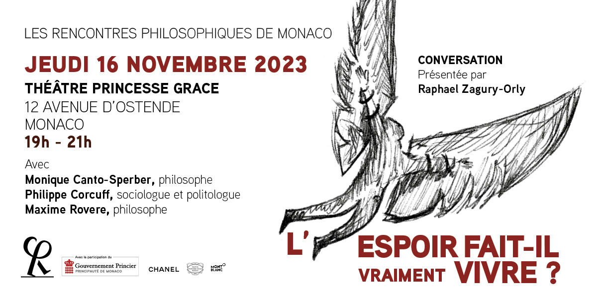 Les Rencontres Philosophiques de Monaco - Ce n’est jamais l’espoir qui fait vivre : ce sont les aléas de la vie qui donnent à l’espoir ses ailes ou, au contraire, les lui coupent. On le sait bien d’ailleurs : l’espoir, on le « nourrit », on le « caresse », on le « fait naître », on le « soulève », on le « suscite » - comme si, en lui-même, il