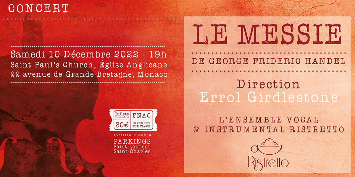 Il concerto sarà diretto da Errol Girdlestone, con i solisti Elenor Bowers-Jolley (soprano), Clint van der Linde (controtenore), Gavan Ring (tenore) e Simon Bailey (basso) e il Coro e Orchestra da Camera Ristretto. Eseguito per la prima volta nel 1742, il Messiah (HWV 56) è un oratorio per coro, solisti e orchestra che rimane uno dei più grandi capolavori musicali di tutti i tempi. L'opera contiene molte arie note, cori mozzafiato e trasmette un'intensità emotiva che ci emoziona ancora oggi, a più di 250 anni dalla morte del compositore. Questo concerto annuale, rinomato nella regione, è uno degli appuntamenti più importanti del calendario del Principato nelle settimane che precedono il Natale.